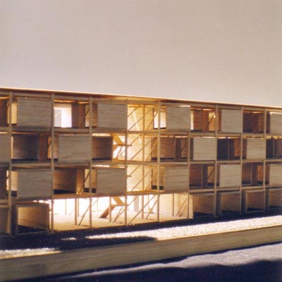 imt - neubau bürogebäude – fellbach 2002im büro dollmann und partnerdas bauvorhaben ist als 4-geschossiges bürogebäude mit einem tiefhof, der als parkierungsanlage dient, konzipiert. ein kleiner wohn- und wellnessbereich ist in der ebene e00 eingebunden. das gebäude besteht aus einem regalgerüst, "offene regalkonstruktion", das sukzessive nach bedarf mit vorgefertigten büromodulen bestückt wird. die büromodule stehen über eine erschliessungszone im räumlichen verbund, so dass ein conchenaritger gesamträumlicher charakter entsteht. das gebäudekonzept gibt dem bauherren die möglichkeit, kurzfristig den bedarf an arbeitsplätzen abzurufen und die investitionen auf den tatsächlichen bedarf zu beschränken. die büromodule werden industriell vorgefertigt. das einzelne modul besitzt die grösse 12,0 x 4,0 x 3,0 m. heiz- und kühlelemente an den decken sorgen für einen entsprechenden komfort der räume.. weitere informationen |
